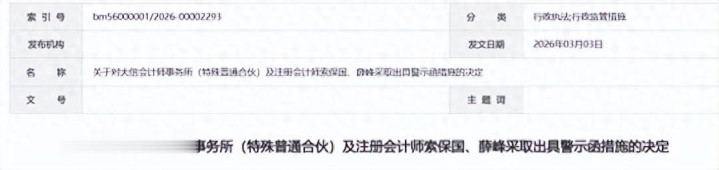 大信管帐师事务所(非凡平常合资)及注册管帐师索保国、薛峰: