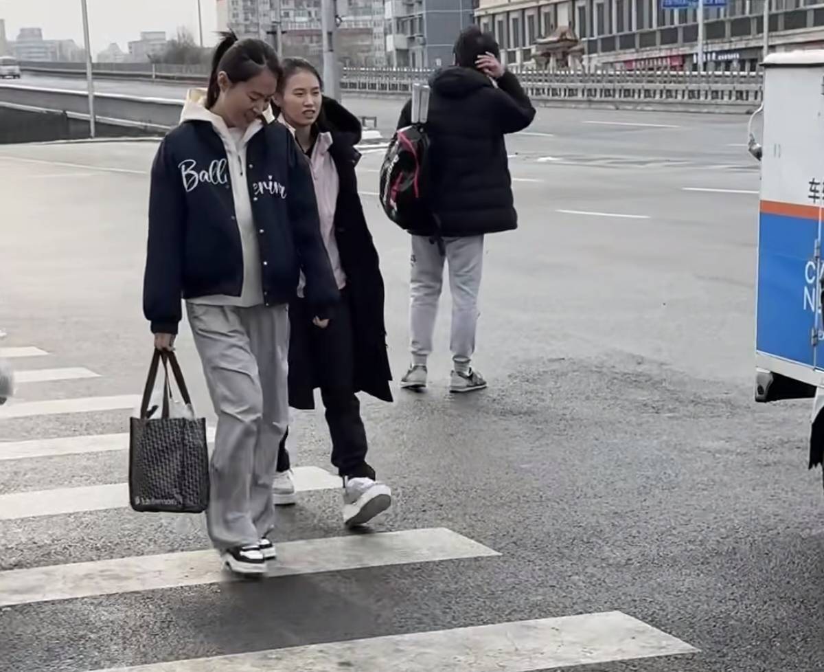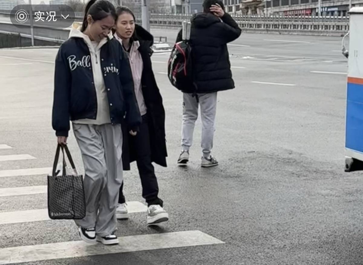 她不是一个东谈主,附近随着一位年级差未几的女士,不知谈在干什么,推测是一又友吧,又或是队友。