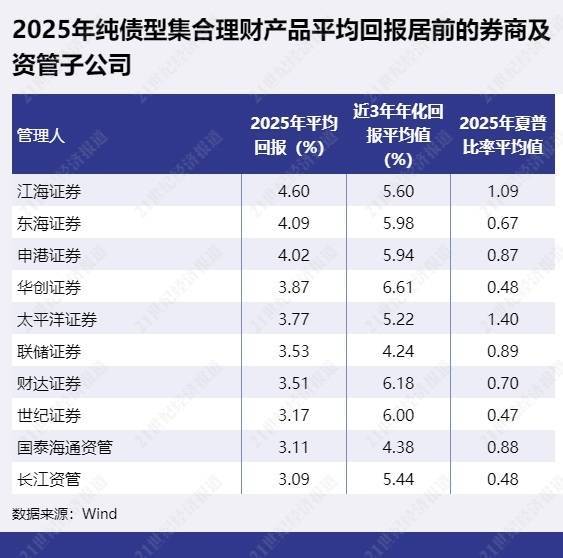 2025年纯债型家具平均报恩名次靠前的券商及资管子公司包括江海证券、东海证券、申港证券等,平均报恩名次靠后的公司有中泰证券资管、诚通证券、国新证券等。