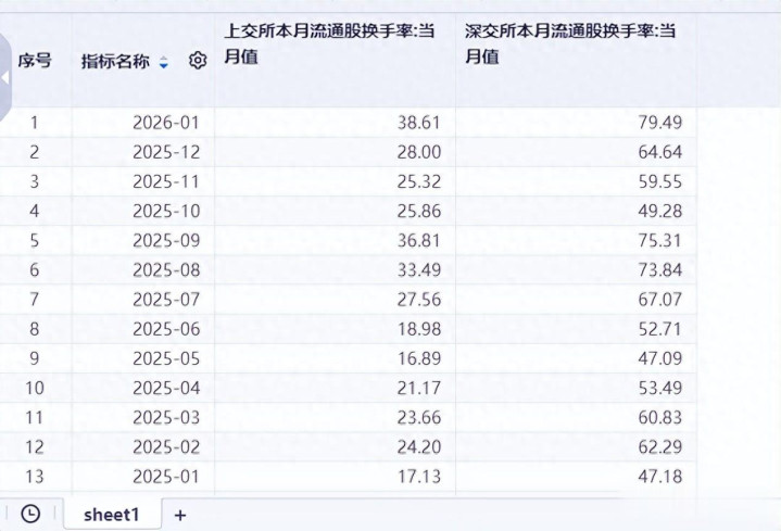 {jz:field.toptypename/}2026年1月份上交所换手率为38.61%,深交所换手率为79.49%;不知说念高频换股的股民有莫得赚到钱,归正券商赚到佣金即是了。